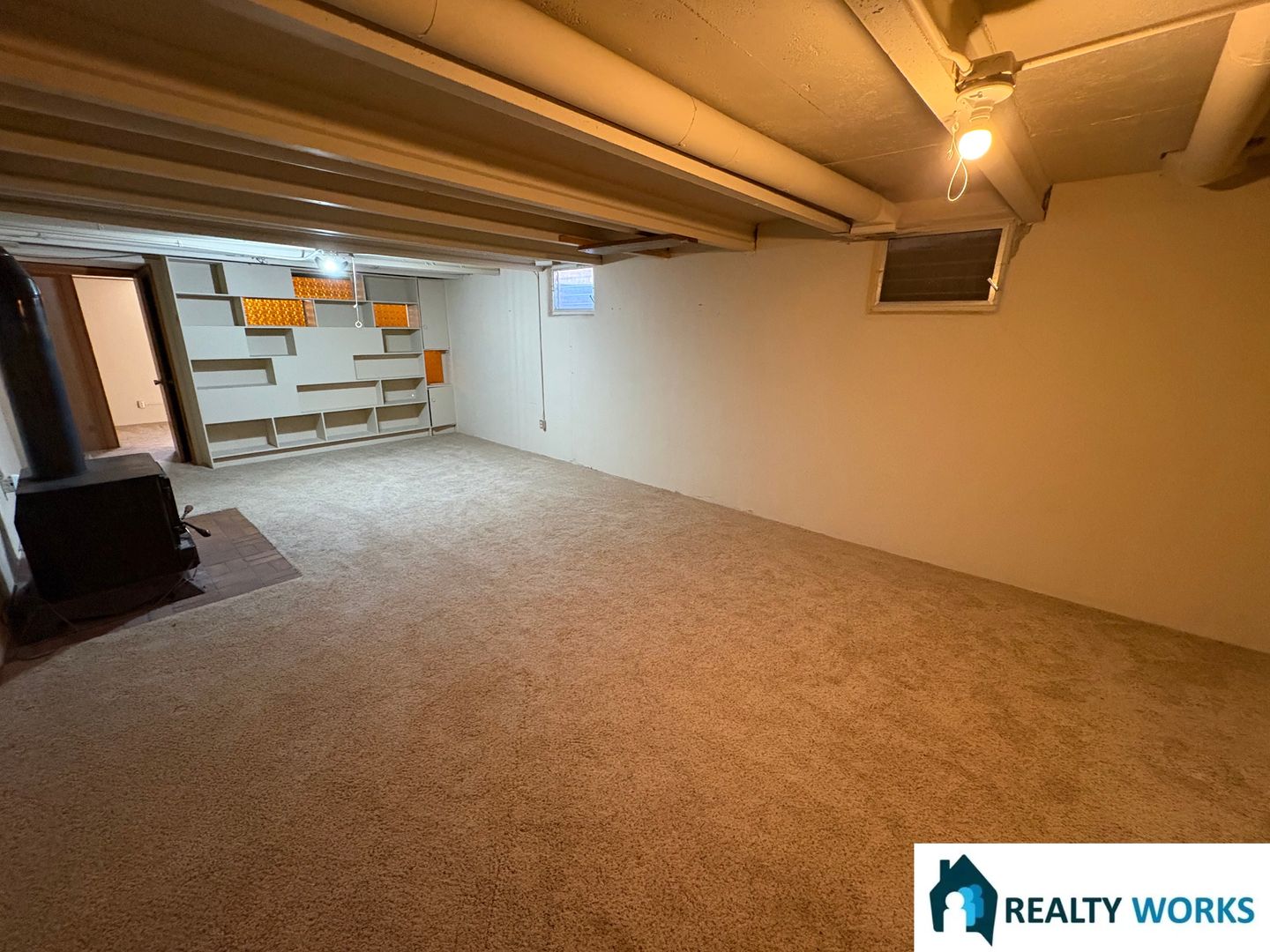 The large finished basement provides excellent additional living space, including a dedicated office room with built-in shelving—perfect for working from home—as well as a generous storage area. A garage is included for convenient parking and extra storage.