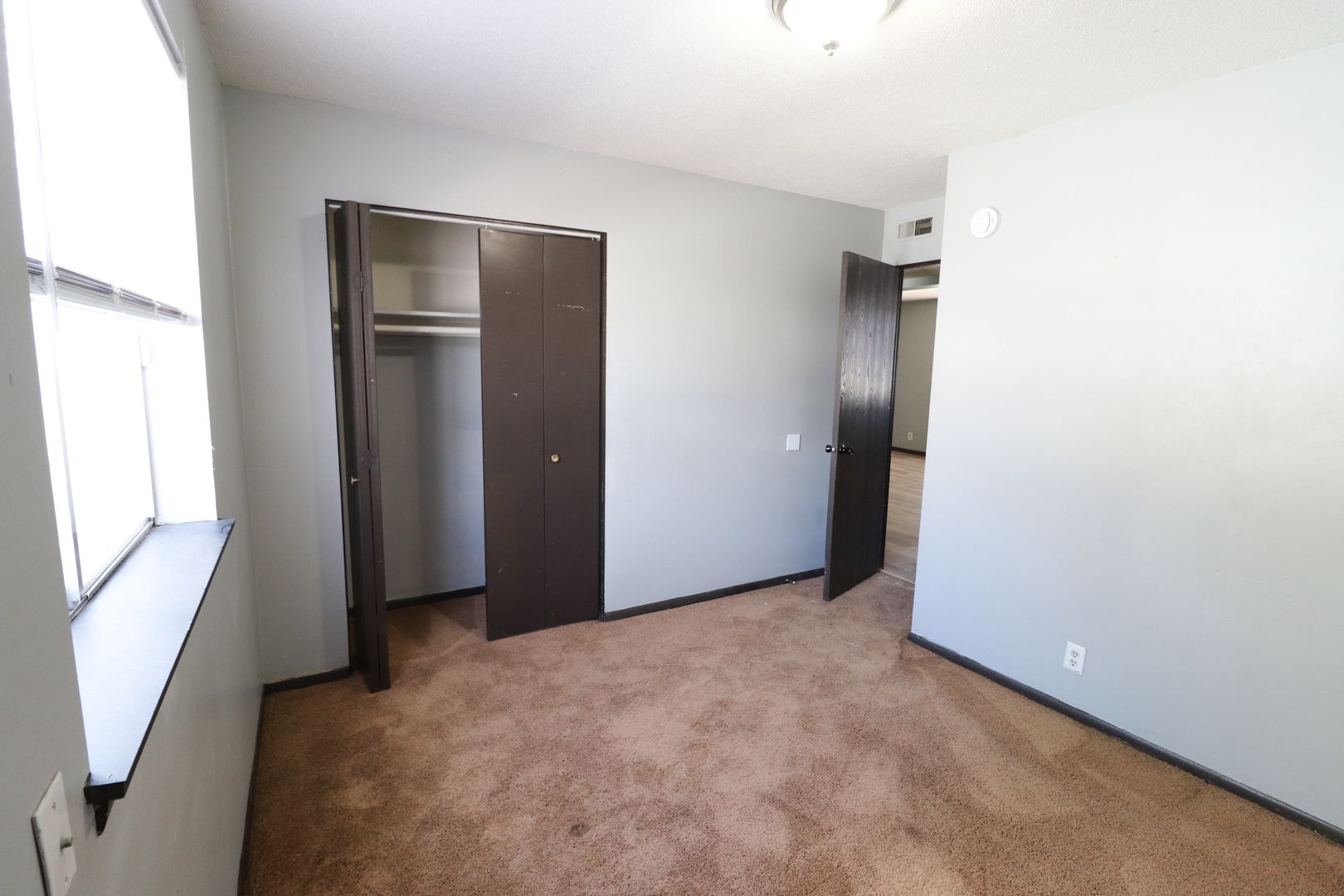 The bedrooms are thoughtfully operated by the bathroom, offering added privacy. Large windows throughout bring in abundant natural light. Residents also enjoy access to shared coin-operated laundry on-site.